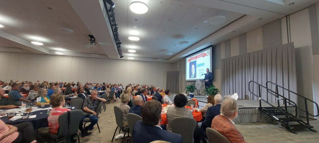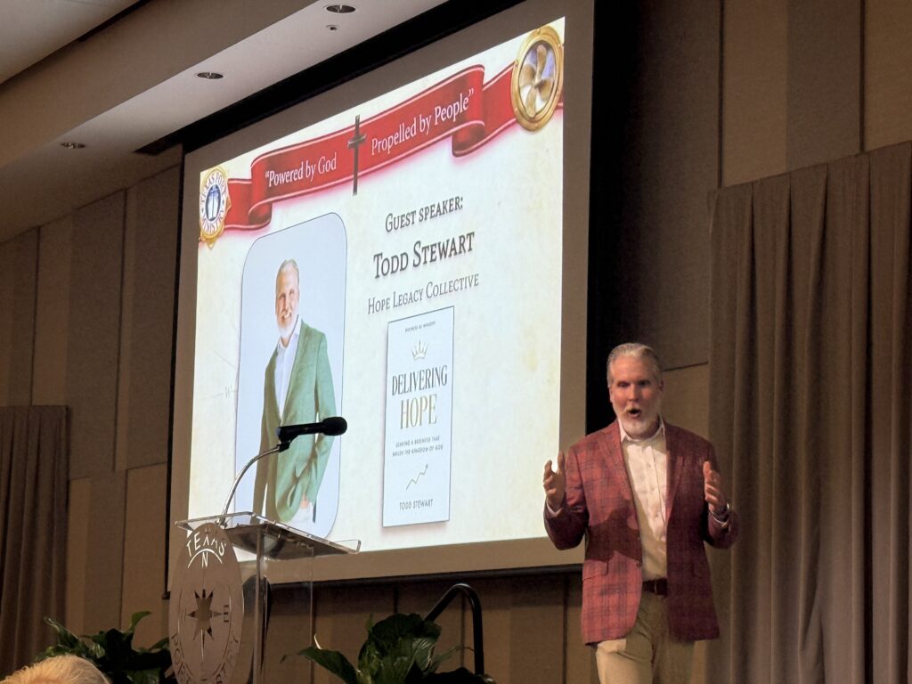 Keynote speaker Todd Stewart, former CEO of Gulf Winds International, delivered a powerful testimony of faith in the marketplace. Sharing his journey from forklift operator to CEO, Stewart spoke of surrendering his life to Christ at age 25 and choosing to lead his company with “faith first and profit following.” He recounted stories of praying with employees, watching hardened men weep and find hope, and navigating personal and business crises while trusting God.