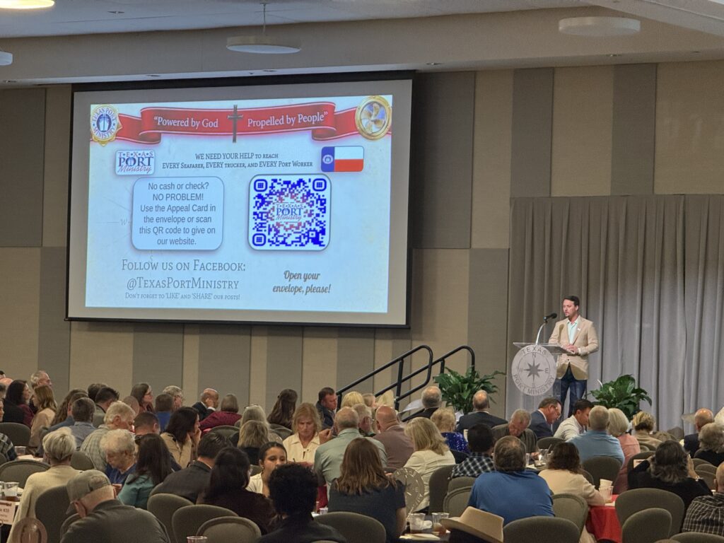 As envelopes were opened and commitment cards filled out, the message was clear: the work of Texas Port Ministry matters. In a port that connects continents, faith, hospitality, and practical care are changing lives—one ship visit, one cup of coffee, one prayer at a time.