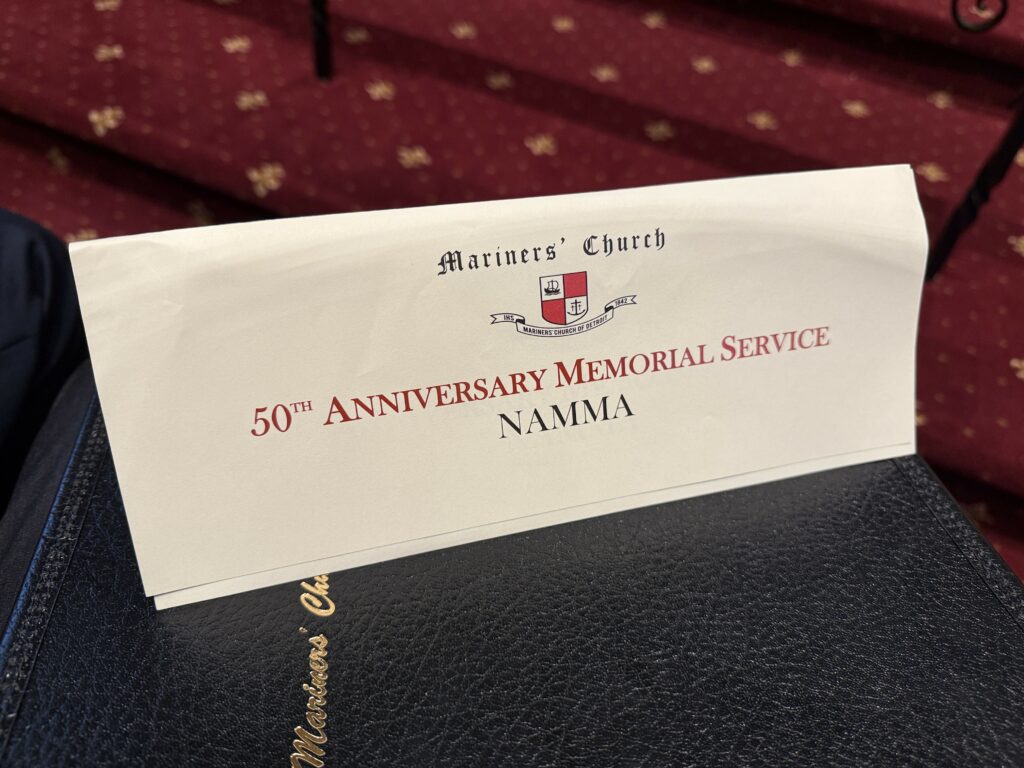 Outside, a light snowfall marked the changing of the season. Just a day before, a Canadian lake freighter had run aground in the Detroit River only a few hundred yards from the church—a sobering reminder that even in our modern age, the Great Lakes remain unpredictable and dangerous. The snow, the cold wind, and the sight of the ice forming on the river gave the day a tangible sense of November’s perils—those same conditions that doomed the Fitzgerald half a century ago.